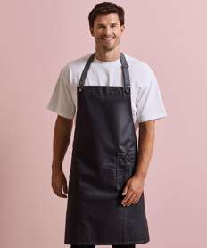 District waxed-look denim bib apron