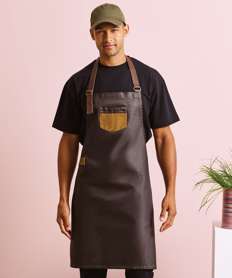 Division waxed-look denim bib apron with faux leather