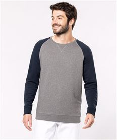 Men's two-tone organic crew neck raglan sleeve sweatshirt