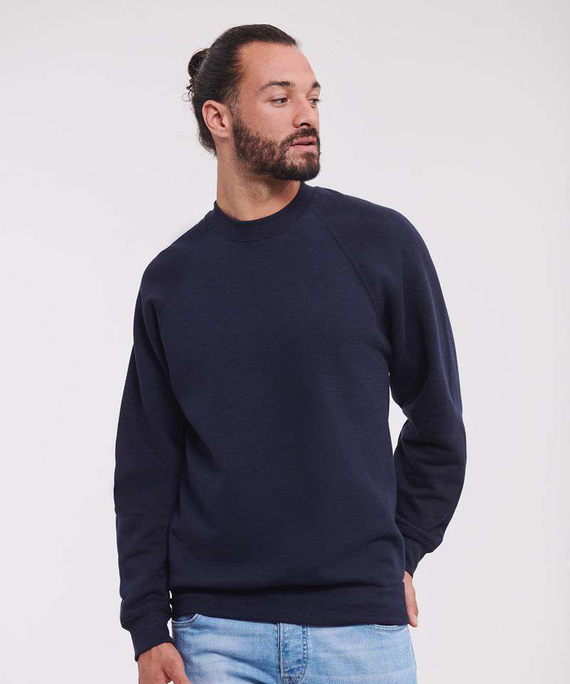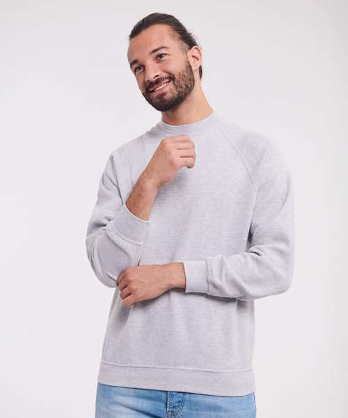 Twin needle coverseams on neck, raglan sleeve, cuffs and waistband for extra durability. Herringbone back neck tape. Spotshield™ stain resistant coating for fabric protection. fade resistant.
