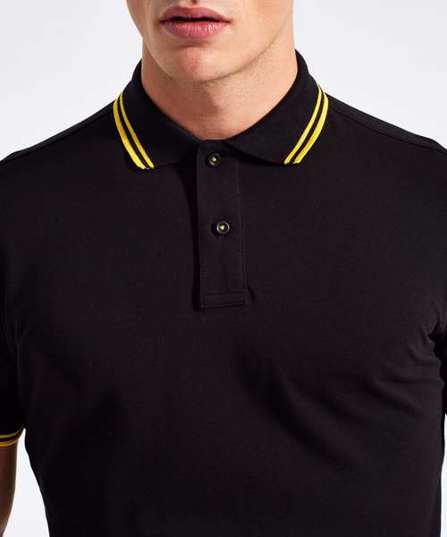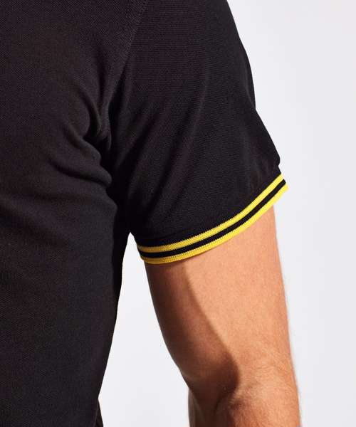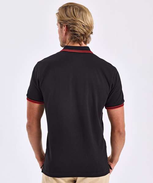 Classic fit polo with tipped contrast detail to the collar and cuffs. 2 button placket. Short sleeves. Side vents. Knitted collar and cuffs. Machine washable. Product contains no branded neck label. Removable Kimble or looped garment tags. Inner seam label holds important product information on one label with a second label containing brand information which can be cut-away. Please note old stock may contain a fixed branded label.