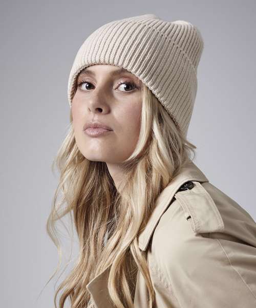 The first thing you notice about this fashion-led beanie is the extra-large cuff, which takes inspiration from premium Scandi streetwear trends, and provides generous space for decoration. The heavy engineered knit makes the B384R super-comfortable to wear, whilst maintaining its shape. An exaggerated crown, oversized cuff and a muted colour palette are modern design features which make this a truly retail-ready style.