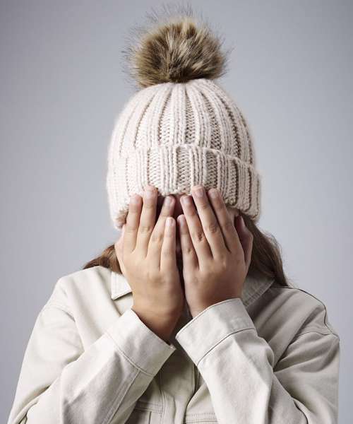 The mini-me trend continues to influence fashion with this fur pom pom chunky beanie. This season staple includes collectable colours that match and compliments the adult style. In a soft-spun acrylic fabric with a sumptuous ribbed knit feel, this cosy winter hat includes a luxe faux fur pom pom which is non-removable for added safety.