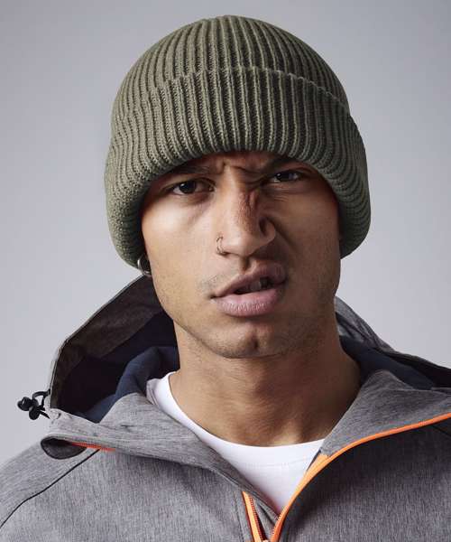 Perfect for the changing seasons, the B508R provides warmth without being too heavy, thanks to its breathable cotton jersey lining. A ribbed exterior completes the classic chunky knit look and helps keep the chill out. The cuffed design provides optimal opportunity for decoration, and an engineered crown is designed with maximum comfort in mind. Made with 50% recycled polyester content.