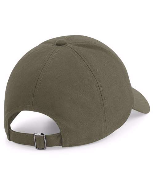 Certified organic cotton. TearAway label for ease of rebranding. Mid profile 6-panel design. Pre-curved peak. Self-fabric strap with tri-glide buckle.