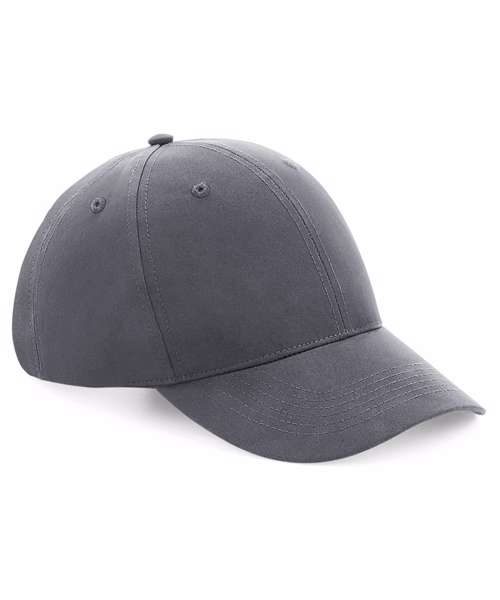 TearAway label for ease of rebranding. 6-panel design. Structured front panels. Pre-curved peak. Stitched ventilation eyelets. Self-fabric strap with tri-glide buckle. 100% certified recycled polyester.