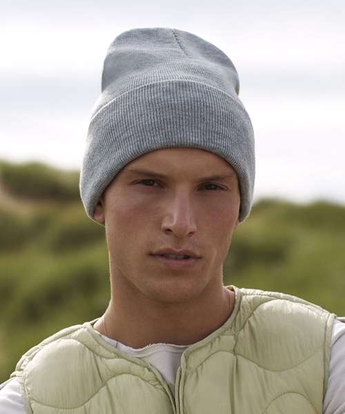 Colours Ash and Granite: 51% Polyester, 49% Acrylic. Other colours: 50% Polyester, 50% Acrylic. Contains 100% certified recycled polyester. Contains at least 50% recycled polyester. Recycled polyester made from 100% rPET. Double-layer knit. Wide-cuffed design for optimal decoration. TearAway label for easy rebranding.