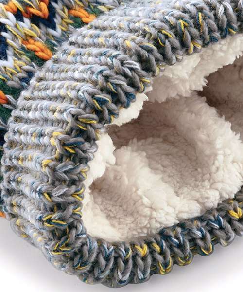 - TearAway label for ease of rebrandingContemporary geometric patternSelf-coloured pom pom
