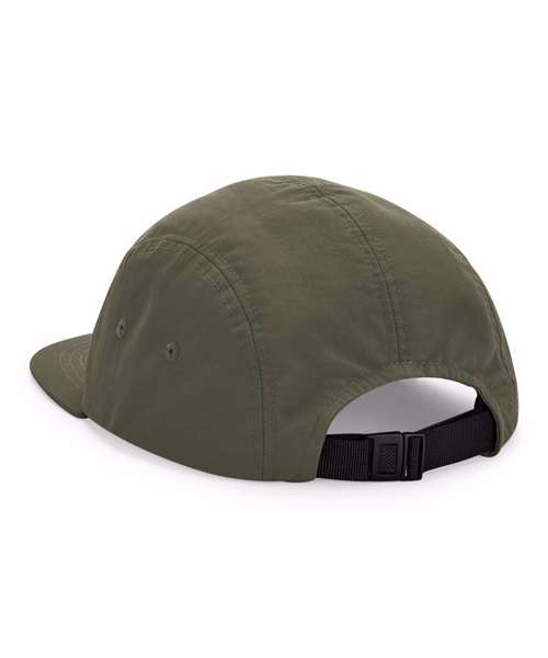 100% Ripstop nylon. 100% Polyester Coolmax® fabric sweatband. Low profile 5-panel design. Stretch-webbing adjuster with low profile clip closure. TearAway label for ease of rebranding.