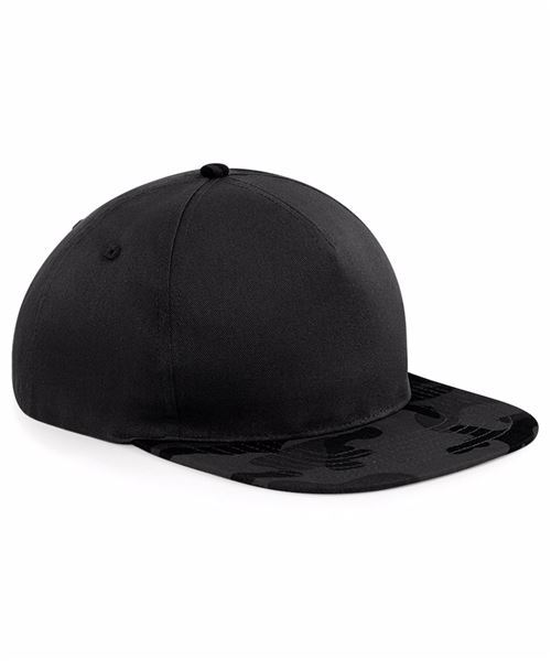 Tear away label for ease of rebranding. Flat peak. Retro style snapback size adjuster. Camouflage detailing. Stitched ventilation eyelets. 5-panel design. Reach certified.