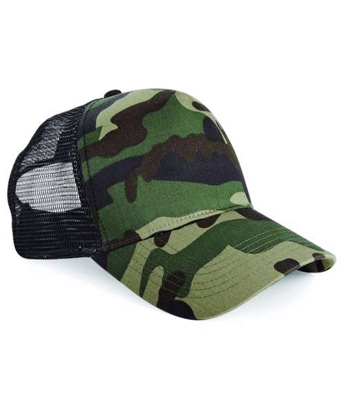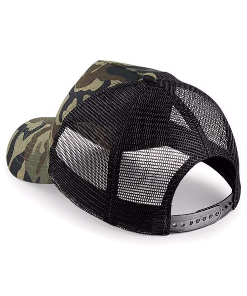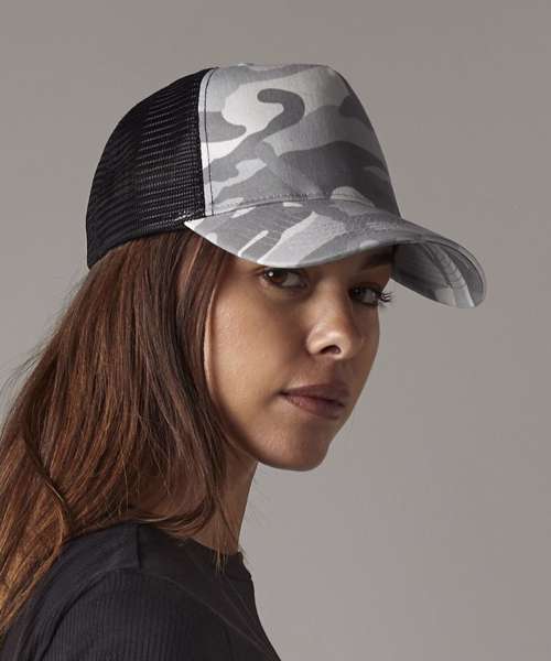 Tear away label for ease of rebranding. Retro style snapback size adjuster. Camouflage detailing. 5-panel design. Pre-curved peak.