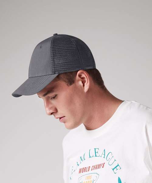 Made with 100% certified recycled polyester, the BC75R is a stylish and sustainable addition to any collection. Its sustainable credentials include its breathable, recycled polyester mesh rear panels. The 6 Panel design features a pre-curved peak and structured front panels, as well as a snapback size adjuster for maximum comfort.