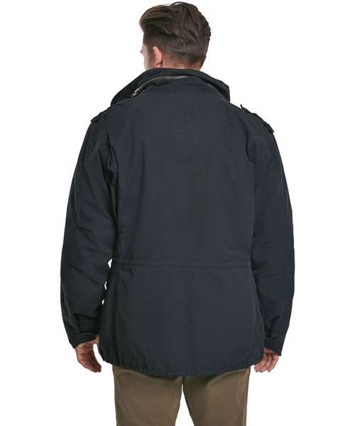 Premium field jacket, many vintage applications, removable lining, adjustable waist, hidden hood.