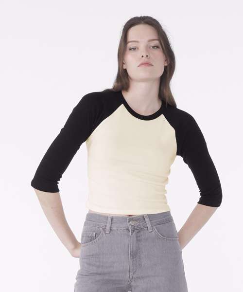 BE142: Women’s micro rib 3/4 raglan baby t-shirt