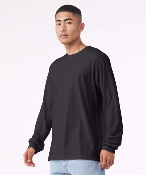This classic unisex Jersey t-shirt fits like a well-loved favourite, featuring a classic crew neck, long sleeves and superior combed and ringspun Jersey cotton which provides a great blank canvas for printing.