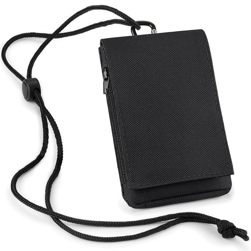 Smartphone compatible. Rip-Strip™ closure. Zippered pocket. Detachable neck cord with toggle. Belt loop and carabiner clip.