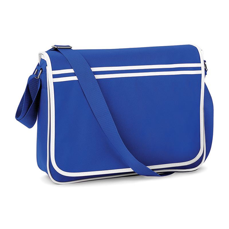 Retro styling. Adjustable shoulder strap. Zippered mesh pocket under flap. Rip-Strip™ closure. Contrast detailing. Reach certified.