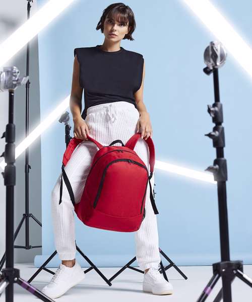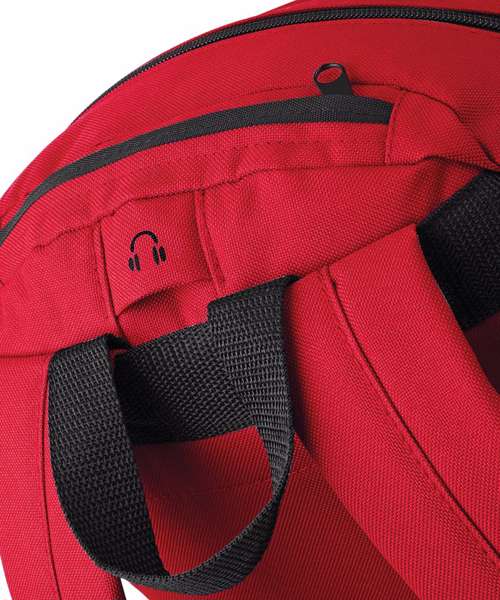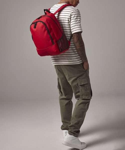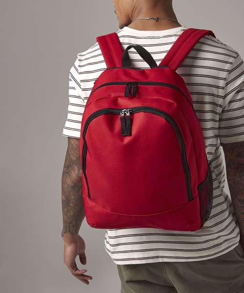 Padded adjustable shoulder straps. Zippered top pocket. Internal organiser section. Padded back panel. Side mesh pocket. Grab handle. Large internal pocket.