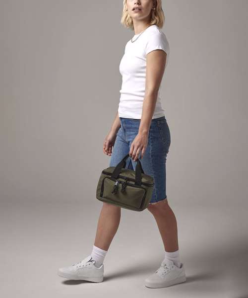 100% Recycled 600D polyester. PVC-free. PEVA lining – BPA-free. Food-safe, fully insulated main compartment. Zipped main compartment. Zipped front pocket. Wipe-clean interior. Internal slip pocket. Twin carry handles. Cord zip pulls with reflective detailing. TearAway label for easy rebranding.
