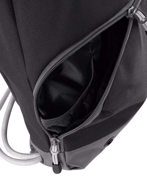 - Water-resistant fabricShoe tunnel/wet pocketWater bottle holder