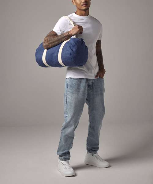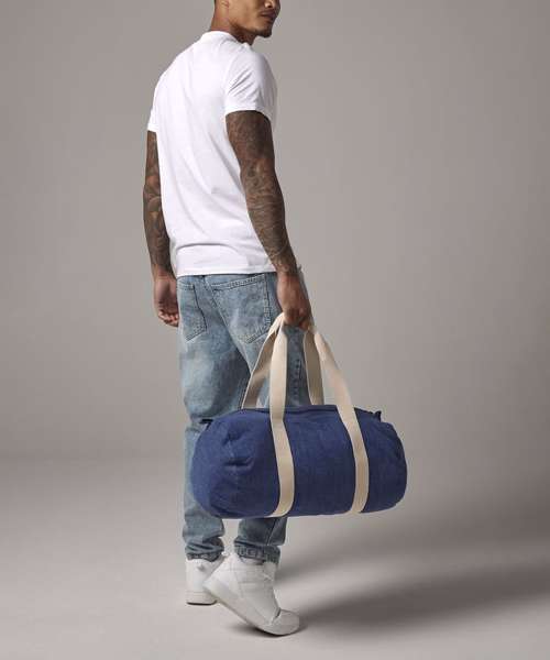 Carried by hand or over the shoulder, the denim barrel bag is a popular style contender. Available in a soft-touch denim blend, this relaxed barrel-shape bag makes the perfect gym kit holdall or weekend bag.