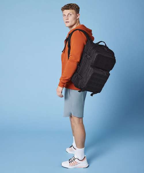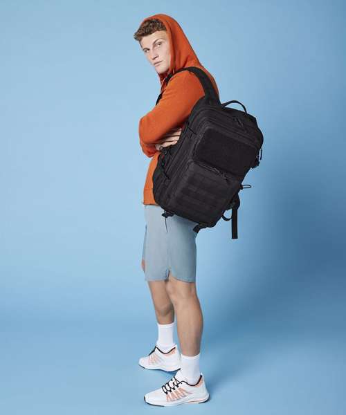 With its 35-litre capacity, the BG850 is extremely generous when it comes to storage space, but still comfortable when carrying thanks to its oversized ergonomic straps, padded back panel and fully adjustable chest strap. This military-inspired design features MOLLE webbing loop details, compression straps and a large top carry handle, as well as a full Rip-Strip™ front pocket designed for optimal customisation with interchangeable patches. As well as a large main compartment, the BG850 also has internal mesh pockets, multiple zippered front pockets, a padded laptop compartment and two tight-knit stretch mesh bottle/shaker pockets. This is an all-purpose backpack ready to take on everything from the commute to the gym.