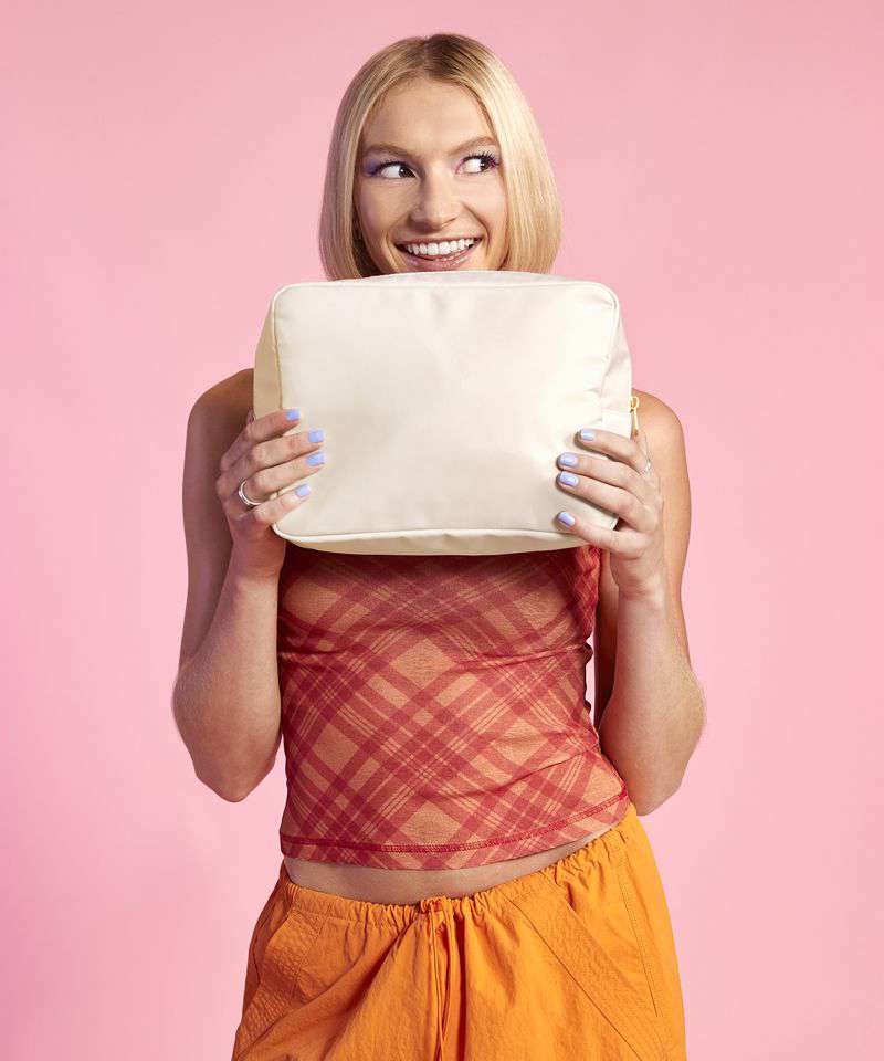 Available in a variety of ice cream-inspired tones, this zipped case adds a sweet touch to travel looks and is perfect for keeping items organised, on the go. Available in two sizes, it offers ample space for make-up, toiletries or everyday essentials. With its playful colours and simplistic design, the Sundae accessory case is a stylish solution for everyday essentials.