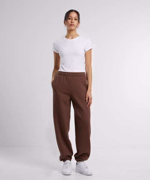 Fluffy texture. Elastic waistband with drawstring. Ribbed ankle cuffs. Cosy interior lining.