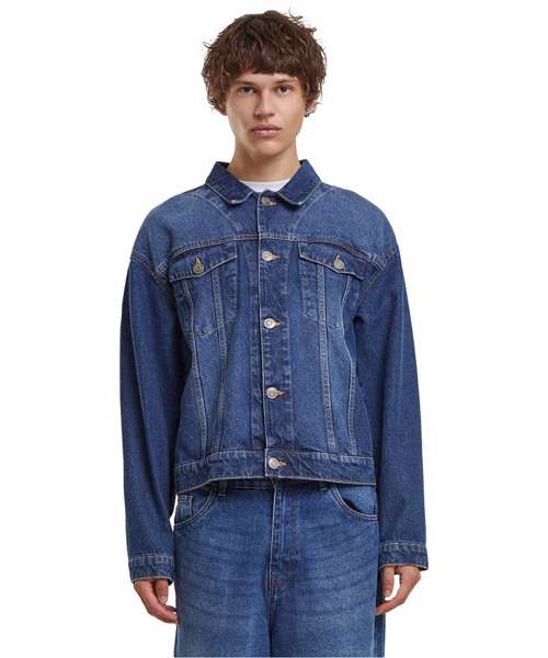 Introducing the Heavy ounce boxy denim jacket – a quintessential piece for any wardrobe seeking timeless style and durability. Crafted with meticulous attention to detail, this jacket features a classic regular collar that exudes sophistication. The button closures from left to right provide a secure fit and add an element of traditional charm. Designed for men, its regular fit ensures comfort without compromising on style, making it suitable for various occasions. This denim jacket is characterised by its long set-in sleeves, offering both warmth and versatility in wear. Its unadorned pattern highlights the rich texture of the heavy ounce denim, allowing it to stand out as a statement piece in any ensemble. With no additional cuts or rise, the jacket maintains a clean and structured silhouette that complements its boxy design. Perfectly suited to those who appreciate enduring fashion staples, this jacket promises to be a reliable companion through changing trends. Whether layered over casual attire or paired with more formal pieces, it seamlessly integrates with different styles while maintaining its unique identity.