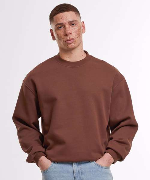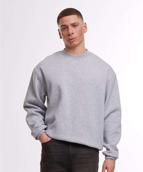 Oversized fit. Dropped shoulders. Ribbed cuffs and hem. Ribbed crew neck. Half-moon at the neck.