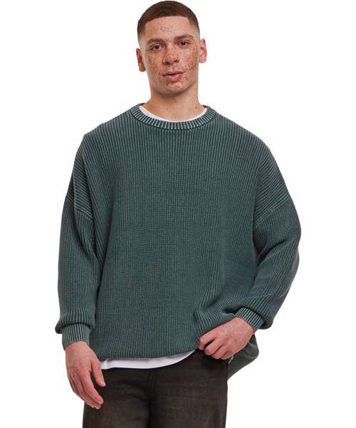 The Acid washed knitted oversized sweater features a chunky knit structure in a modern oversized fit, its distinctive acid wash giving it a unique, used look. This knitted sweater is the ideal choice for trendy, individual style on cooler days.