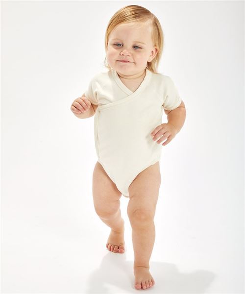 Made from 100% organic cotton, this mock-wrap front opens out flat for easy dressing and decorating. Flat seams at armholes and soft binding at edges ensure comfort and longevity in wear.