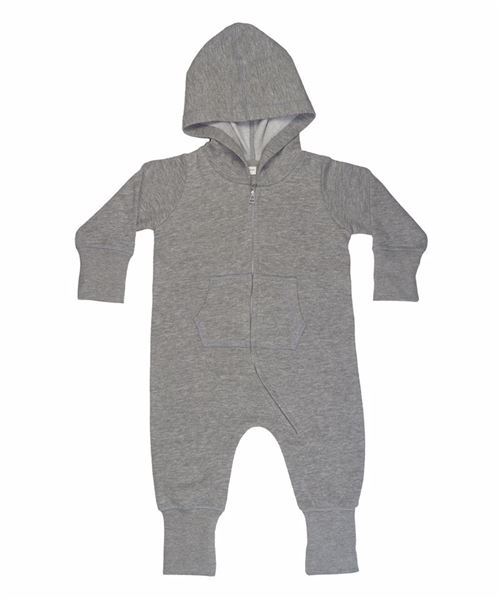 Soft and cosy baby all-in-one with brushed inside and 3/4 length zip for ease of dressing. Extra long cuffs can be worn folded down or back as baby grows. Seam free back for optimal decoration potential.