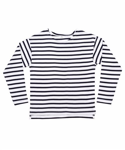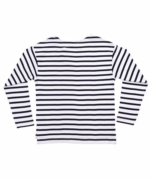 Breton-style yarn-dyed soft fabric in 16 x 8 mm stripe. Long sleeves. Side vents and slight drop tail. Organic cotton. Tear-out label. GOTS certified. Oeko-Tex certified. Vegan certified.