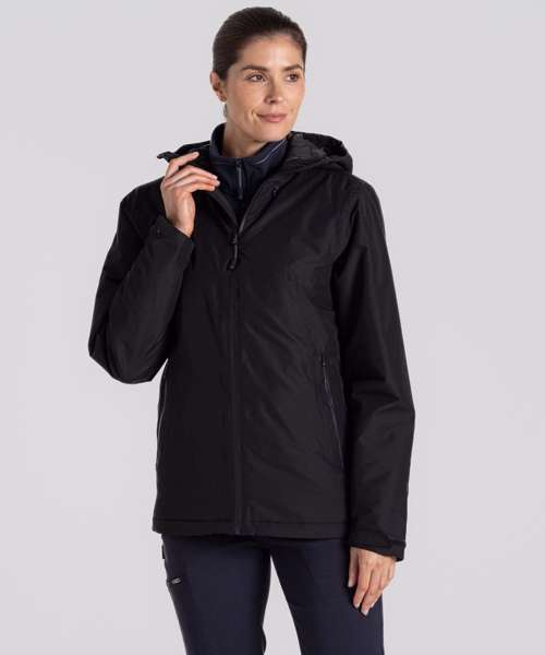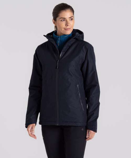 Cool wash with Craghoppers AquaDry waterproof cleaner or pure soap. Wash with similar colours. Do not use bleach or water softeners. Do not use fabric conditioners. Rinse well. Remove immediately after wash. Can be tumble dried on a low setting. Cool iron, if needed, on the outer side of the fabric. Do not dry clean. Do no wring. Close all fasteners before washing and drying. Use Craghoppers AquaDry reproofer if needed. Apply heat as per care instructions if DWR needs regenerating. Fabric may be damaged by solvents, alcohols and insecticides.
