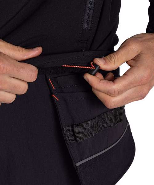 Part recycled polyester elastane softshell with borg back, AquaDry Membrane, H2OShield DWR finish and part recycled zip tapes. GRS Certified fabrics, ETI factories, REACH compliant.