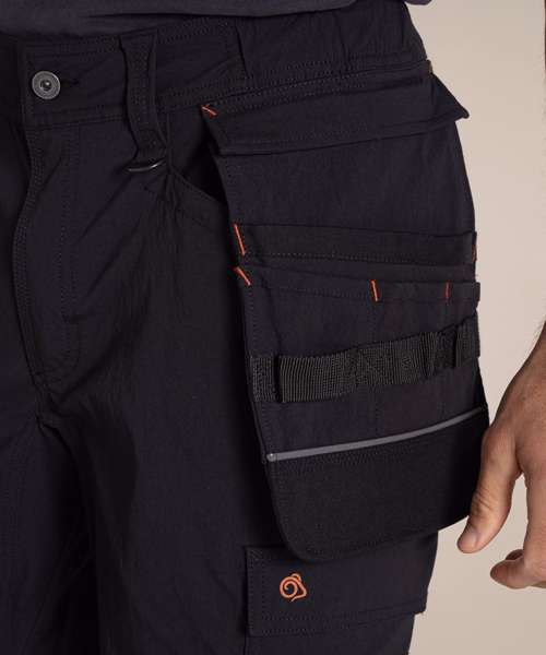The ultimate workwear trousers, made from sun-protective stretch polyamide with H2OShield DWR finish and odour-control patches. They’re designed for comfort and durability, featuring removable multi-pocket holster and articulated knees with Cordura® reinforced panels and kneepad insert pockets.
