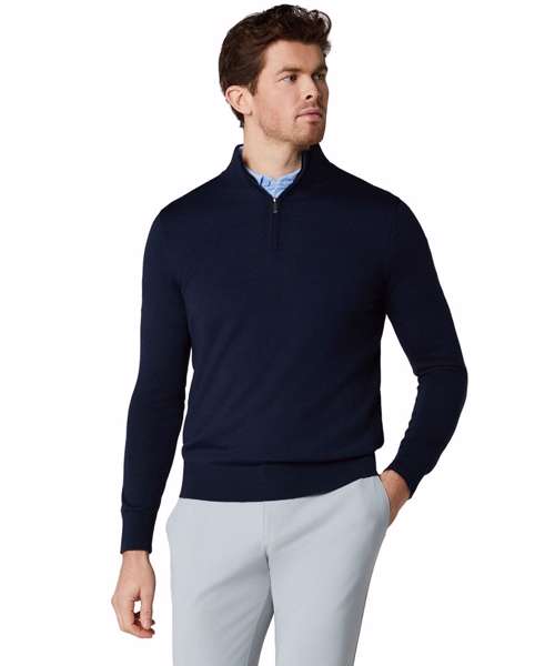 1/4-zip merino blend sweater. 1/4-zip closure. Thermal. Mock neck.