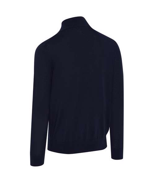 Enjoy your best game, even in cooler conditions, with Callaway’s 1/4-zip merino blend sweater for men. Insulated thermal fabric creates a barrier between you and the cold, while breathable merino wool offers warmth and a soft-to-the-touch feel for on-course comfort. A mock neck offers added protection against the elements and the 1/4-zip allows easy removal when the weather warms up.