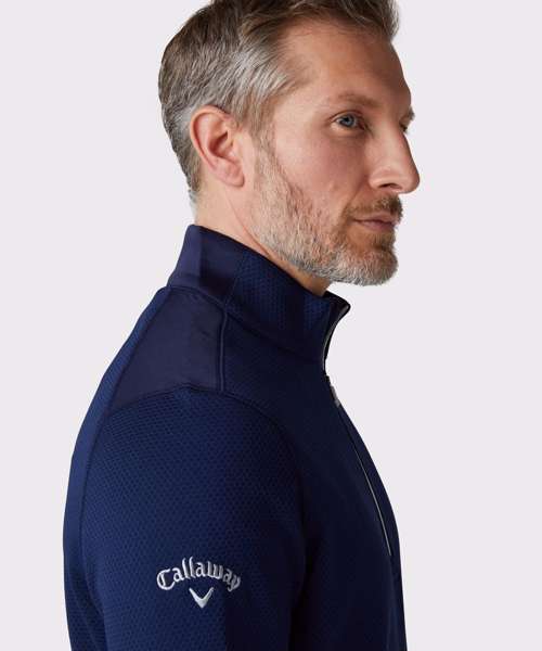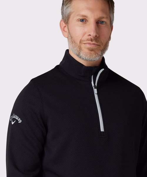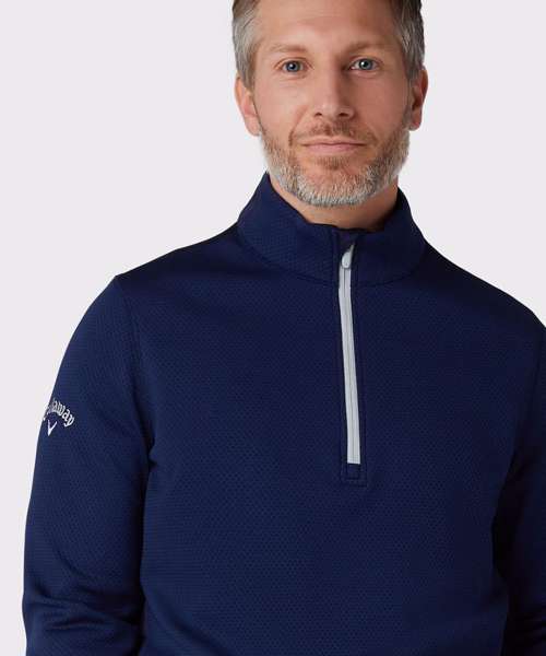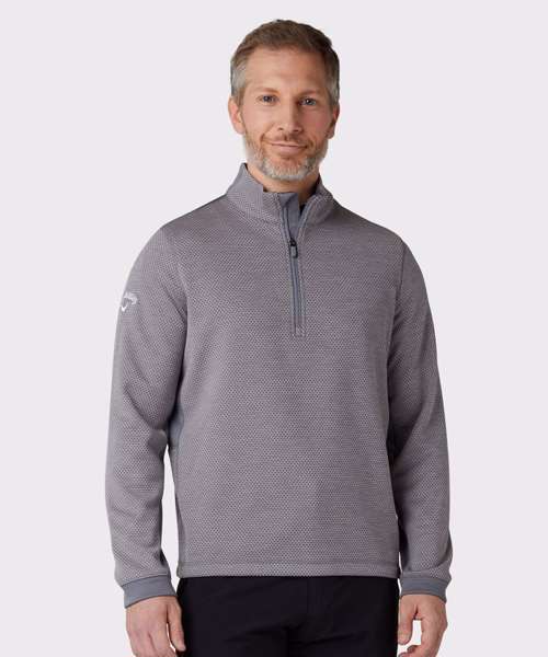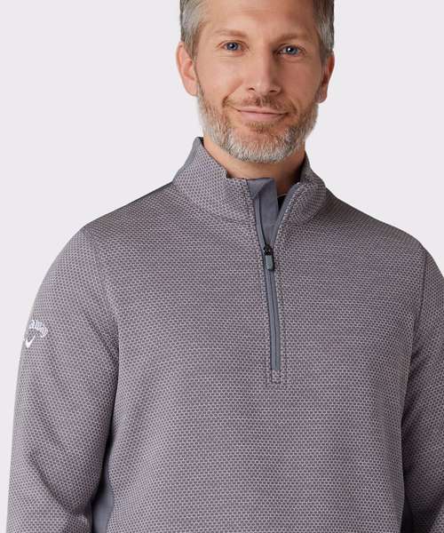 Hex-patterned 1/4-zip fleece with an adjustable drawstring hem, plus Callaway Tour logo on the right sleeve. OPTI-DRI™ transfers moisture away from your body to keep you cool and dry.