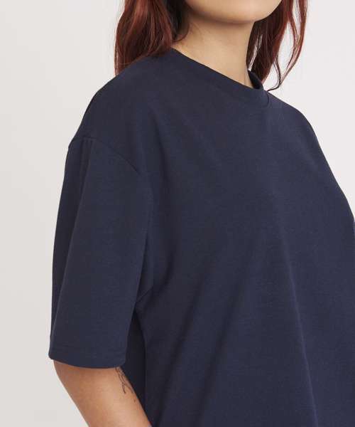 Oversized, boxy fit. Twin-needle stitching at sleeve and hem. Luxurious hand feel. Size label only, for easy rebranding. Side seams (non-tubular). Taped neck. Crew neck. Set-in sleeves.