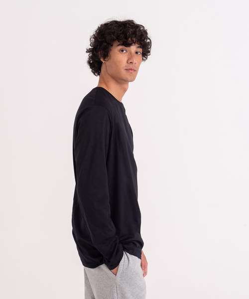 100% Organic cotton long sleeve tee. 150gsm single Jersey. Taped back neck, ribbed collar and twin-needle stitching at hem and cuffs.