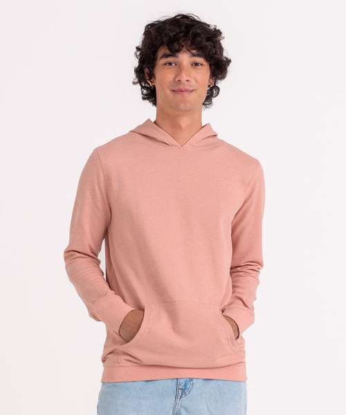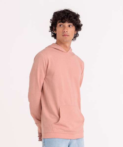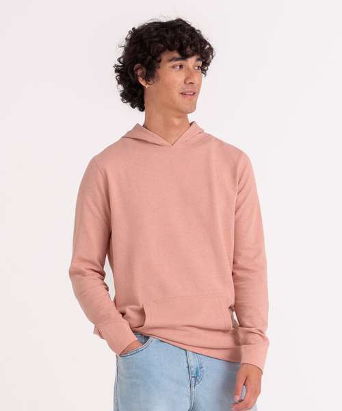 Long sleeve regenerated cotton hoody with French terry construction. Features include set-in sleeves, angled rib at cuffs, ribbed hem and kangaroo pocket.