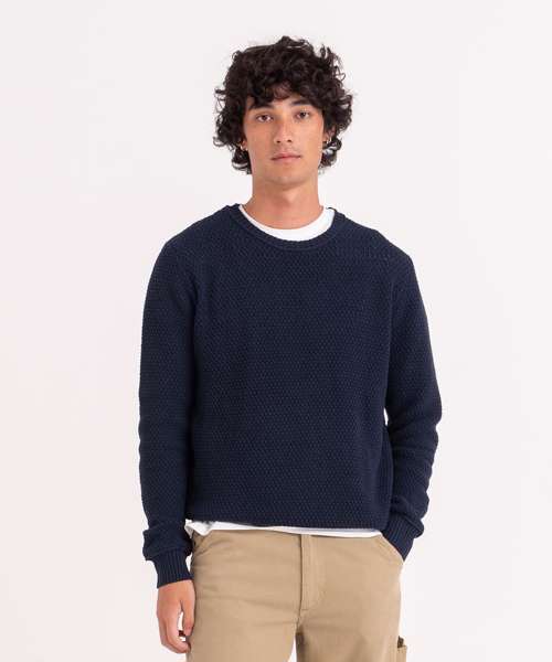 Working towards a more sustainable planet, the Taroko sweater is made from using 70% regenerated cotton waste and 30% recycled polyester. This stylish sweater features crew neck, ribbed cuffs and hem with a seed stitch for a truly unique layer. Waffle knit and fashion fit.