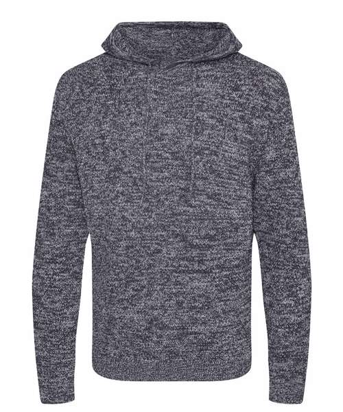 Chunky tuck stitch knitted hoodie made from regenerated yarn. Featured hood with drawcords, rib at cuffs and hem and two-tone yarn.