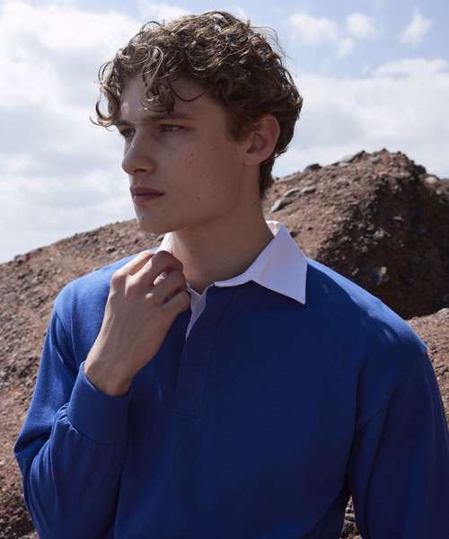 Self fabric taped side vents. Elastane reinforced cuffs for shape retention. Twin-needle hems. Traditional rugby collar with cotton webbing. Dyed to match plastic buttons. Rugby leisurewear garments are for leisure use only.
