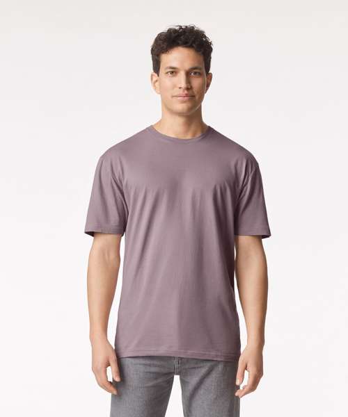 Take the edge off your world’s hectic pace with the tee that always feels like a stress-free weekend. This ringspun pre-shrunk cotton Jersey is knit exclusively of deluxe 30s Softstyle™ yarns, resulting in a lightweight, highly uniform fabric that makes an excellent backdrop for embellishment in a wide array of colours. With Euro fit shoulders and arms for a fitted look, it’s a modern-day essential.