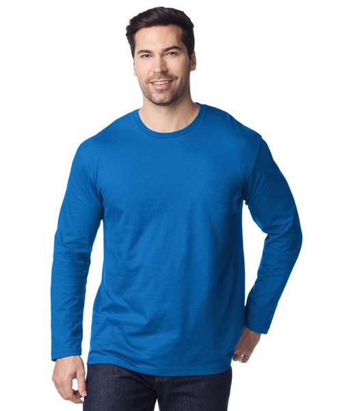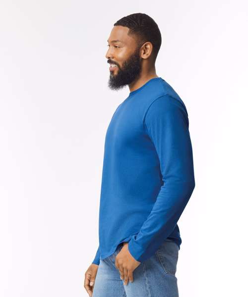 The ideal melding of classic comfort and modern utility, this versatile long sleeve tee has a trim Euro fit that makes it a popular choice across all activities and age groups. The Gildan® Softstyle™ cotton yarns give it a uniquely comforting texture for superior wearability. Even better, the fabric is pre-shrunk and ringspun to maintain its stylish shape and keep any embellishment looking great.