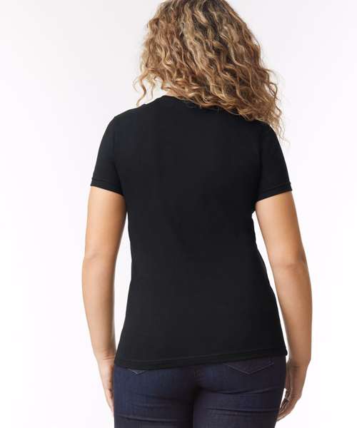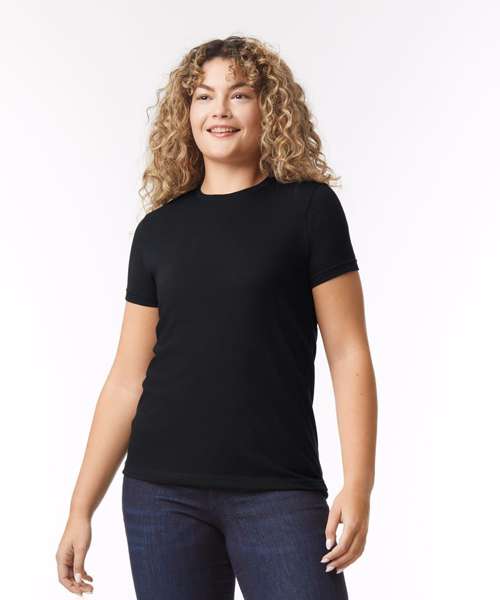 Made with our soft ringspun cotton blend, the Softstyle™ CVC women’s t-shirt features high stitch density for a smoother printing surface. Soft ringspun fabric feels great against your skin. Non-topstitched, narrow width, rib collar. Taped neck and shoulders for comfort and durability. Semi-fitted A-Line shape with side-seamed body. High-performing black tear-away label.
