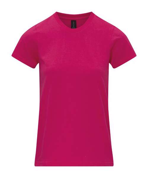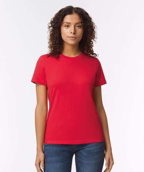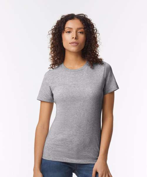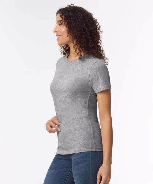 Made with our soft ringspun cotton and cotton blends, the Softstyle™ midweight women’s t-shirt features high stitch density fabric that offers a smooth printing surface, ideal for DTG. Ringspun fabric feels great against your skin. Non-topstitched, narrow width, rib collar. Taped neck and shoulders for comfort and durability. Semi-fitted, side-seamed body. High-performing black tear-away label.